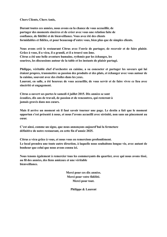 Situé entre le Cours Saleya et la place Rossetti, deux places réputées du Vieux-Nice, le "CITRUS" est un charmant petit restaurant qui dans un style industriel et cosy vous sert une cuisine de retour du marché celle-ci vous est concoctée au grès des saisons, des idées et des coups de cœur de son chef Philippe LIMOGES.